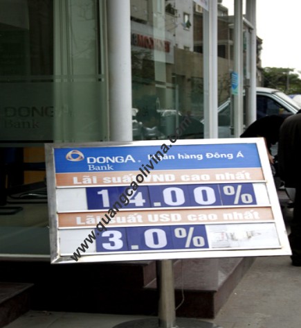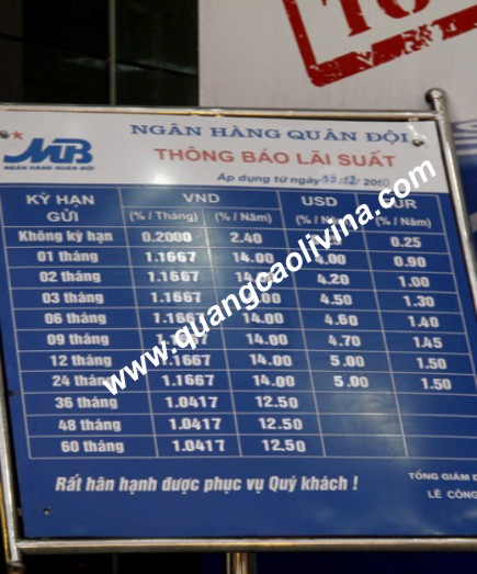 Mẫu biển lãi suất ngân hàng, bảng quảng cáo cho ngân hàng led đẹp, bang lãi suất ngân hàng bằng nhôm, inox đứng trên mặt đất theo nhu cầu của khách hàng.